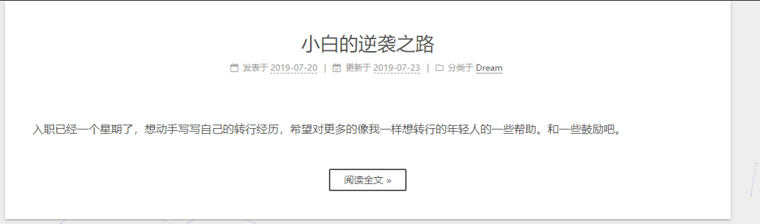 # Read more button # If true, the read more button would be displayed in excerpt section. read_more_btn: true # 是否显示阅读全文按钮